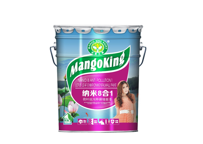 产品说明:芒果王纳米8合1荷叶抗污环保墙面漆,采用荷叶疏水净化技术,墙面洁净易洗漆膜坚韧,超强自洁,有效防止污渍渗透,超强疏水防水功能,经受超上万次擦洗,防霉、抗藻性能。